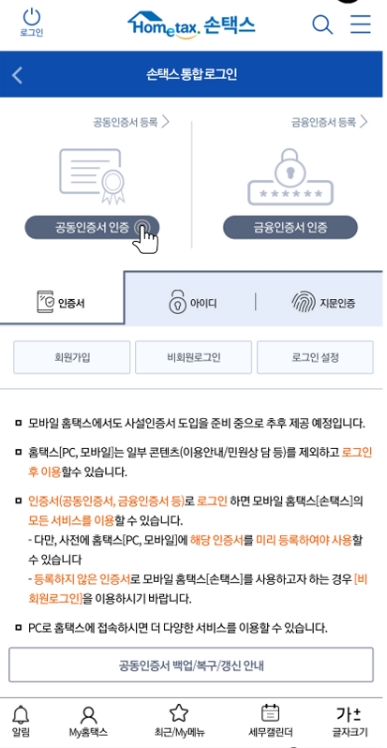 스마트폰에서 연말정산이 가능한 이유는 서류 작성하기가 너무 간단해졌습니다. 게다가 공인인증서 외에 민간의 사설인증서로도 국세청 홈택스에 접속하는 게 가능해졌기 때문입니다.