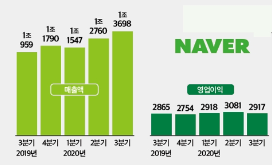 금융정보업체 에프앤가이드에 따르면 네이버는 지난해 4분기 영업이익이 3129억원으로 전년 동기 대비 251% 상승할 것으로 추정된다. 올해 네이버의 영업이익 컨센서스(증권사 추정지 평균)는 전년 대비 19.6% 상승한 1조4070억원으로 전망됩니다.
