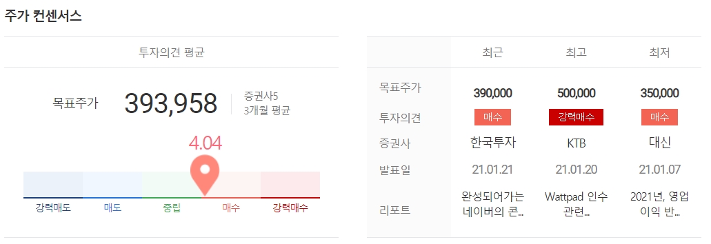 또 3월 마무리 예정인 일본 계열사 라인과 일본 야후재팬 운영사인 Z홀딩스와의 경영통합에 따른 시너지 효과와 함께 최근 세계 최대 웹소설 플랫폼 '왓패드'를 인수하는 등 콘텐츠 투자 기대감도 커지고 있습니다.
