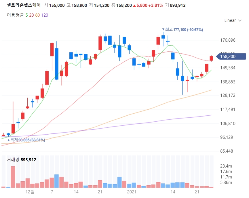 셀트리온에서 개발한 코로나19 치료제·백신이 다음 달 중 식품의약품안전처(이하 식약처)로부터 승인을 받을 것으로 예상됩니다. 이에 셀트리온 헬스케어의 주가가 상승하고 있습니다.