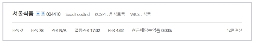 서울식품 주가는 16일 오후 12시 17분 기준 전일대비 16.49%(62원) 상승한 438원에 거래되고 있고, 서울식품우 주가는 2.63%(150원) 상승한 5,850원에 거래되고 있습니다.