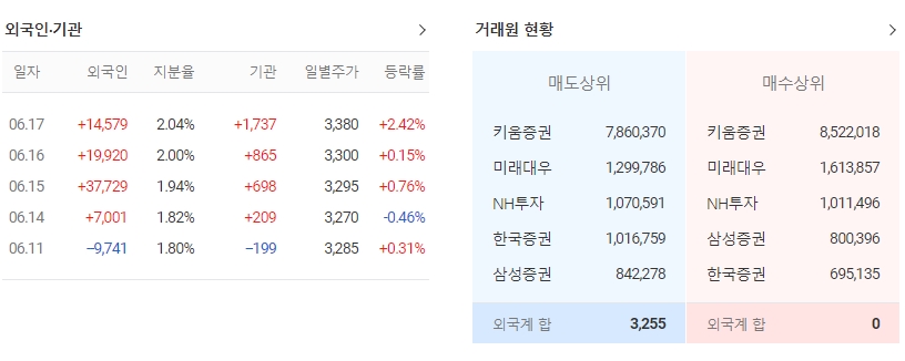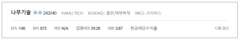 외국인소진율은 2.04%, 주가순자산배수(PBR)는 3.71배, 동일업종 PER은 21.75배입니다.