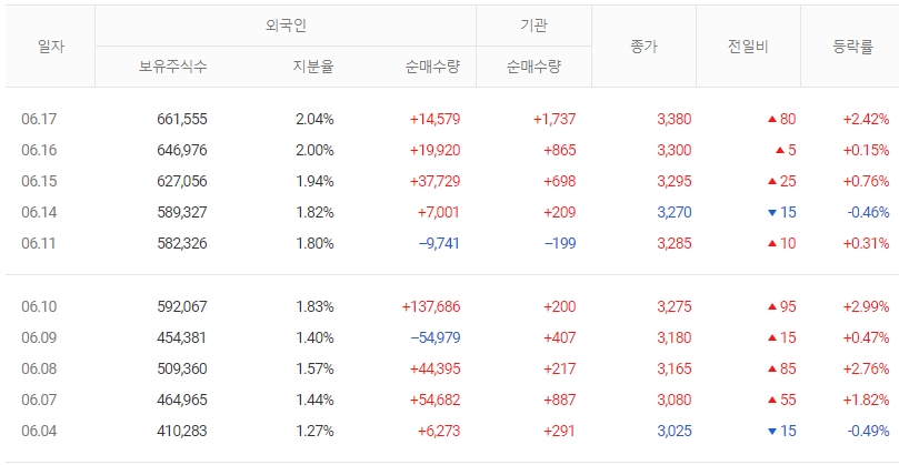 외국인소진율은 2.04%, 주가순자산배수(PBR)는 3.71배, 동일업종 PER은 21.75배입니다.