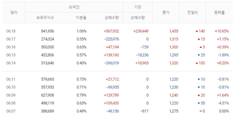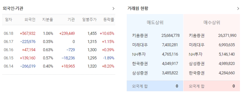 한편 외국인은 이 종목에 대해서 최근 3일 연속 75.4만주 순매수를 하고 있는데 전일 외국인이 대량 순매수를 하고 있어 투자자들의 관심이 집중되고 있습니다.