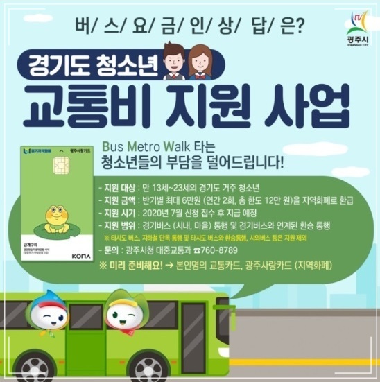 지난 2019년 9월은 경기시내버스, 11월은 마을버스 요금이 인상이 되어 경기도민들의 교통비 부담이 늘어나게 되었습니다. 이에 경기도가 대중교통을 통해 등하교 하는 청소년들을 위해 꿀 복지 혜택을 제공합니다.