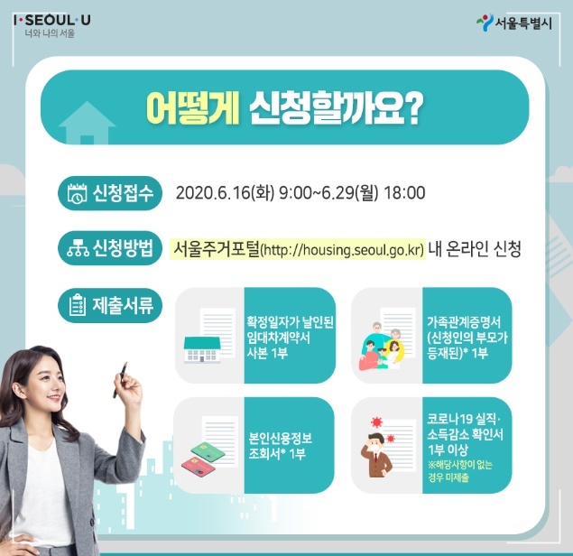 자세한 문의는 '1대1 상담' 이용 또는 전화 다산콜센터(120), 청년월세지원상담센터(02-2133-1337~9), 주택정책과(02-2133-7702 ~7706)로 연락하면 된다.