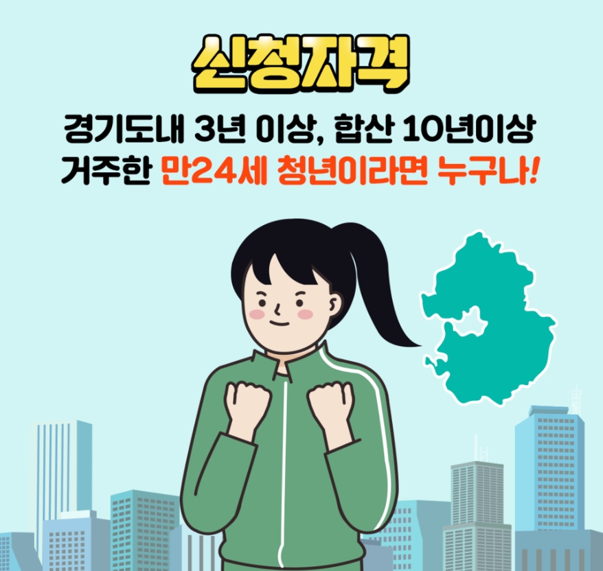 대상은 경기도 내 만 24세 청년으로 3년 이상 계속 거주하거나 또는 합산하여 10년 이상 거주한 경우, 소득 등 자격조건에 관계없이 누구나 분기별 25만 원씩 최대 100만 원을 받을 수 있습니다.