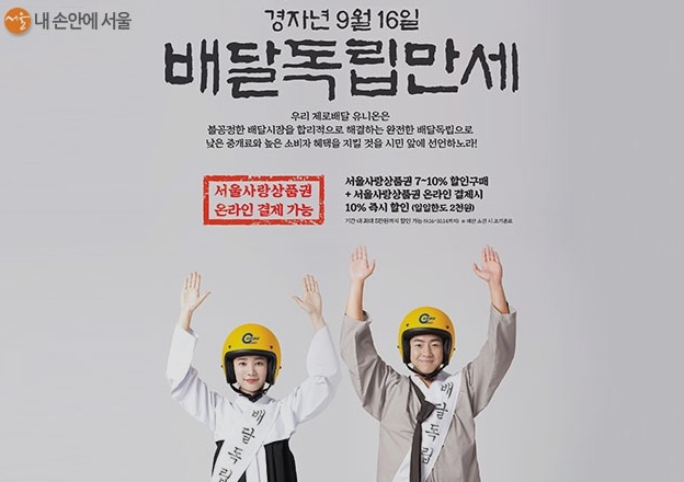 제로배달 유니온 가맹점은 최대 2%대의 낮은 중개수수료로 비즈니스의 가중을 덜 수 있고, 소비자는 최대 10% 할인을 받은 서울사랑상품권을 매입해 배달어플리케이션에서 이용할 수 있습니다.