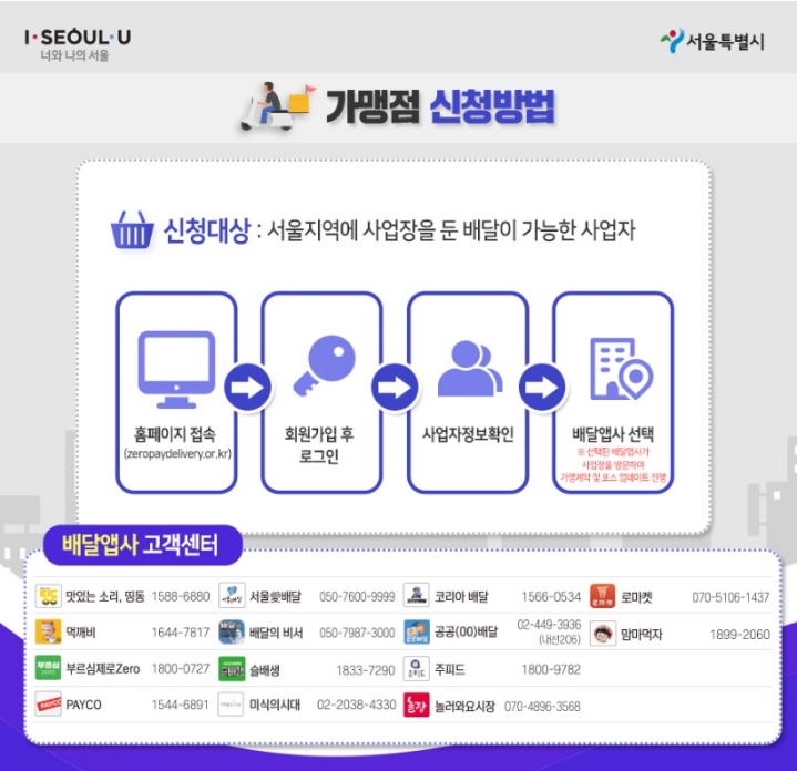 가맹점은 서울 지역에 사업장을 둔 배달이 가능한 사업자로 신청방법은 간단합니다.