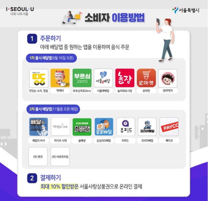 소비자는 최대 10% 할인을 받아 서울사랑상품권을 구입해 유니온에 속하는 배달앱의 온라인 결제를 서울사랑상품권으로 사용할 수 있어 저렴하게 이용이 가능합니다.