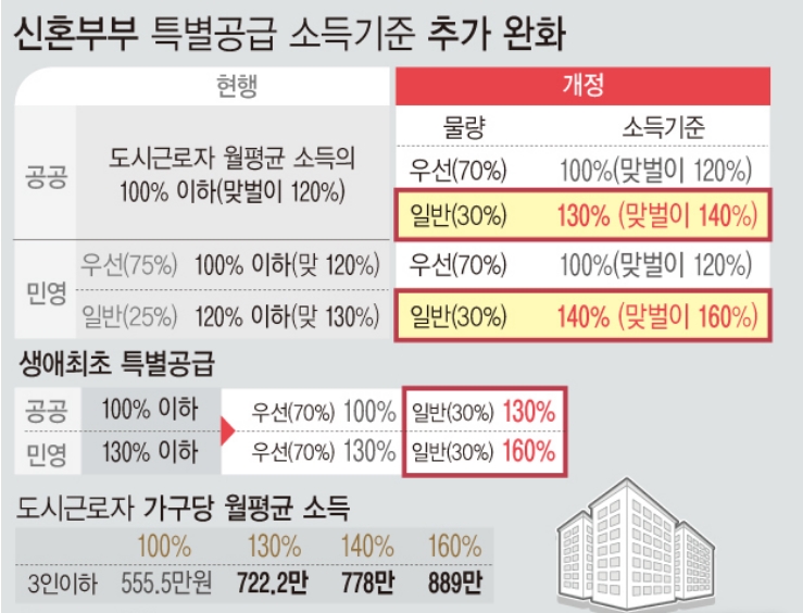 신혼부부 특별공급 소득기준 160%완화