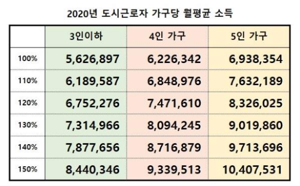 이번 개정안에는 신혼부부 특별공급 소득기준을 민영주택의 경우 도시근로자 월평균 소득 140%(맞벌이 160%) 이하로 완화하는 내용이 담겼습니다. 세전(稅前) 소득으로 3인 이하 가구의 경우 도시근로자 월평균 소득 140%는 월 778만원, 160%는 월 889만원입니다. 월 899만원을 연봉으로 환산하면 1억668만원입니다.
