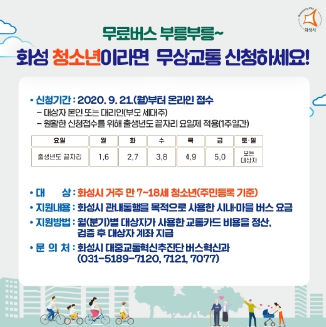 이번 청소년 무상교통 정책은 한정된 용돈으로 생활하는 청소년들의 통학 비용 부담을 덜어 주기 위해 시작됐습니다. 이 정책은 시내버스나 마을버스를 타고 화성시 관내에서 이용할 경우에만 무상으로 이용이 가능하고, 화성시 이외의 지역으로 이동할 때는 지원 대상에서 제외됩니다.