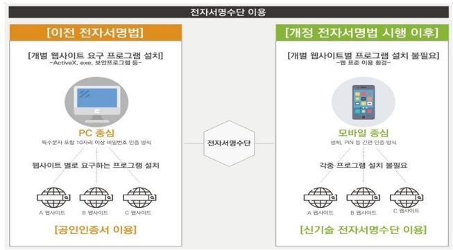 과학기술정보통신부는 공인인증서를 폐지하고 전자서명 서비스의 임의인증제도를 도입한 개정 '전자서명법'을 발의 했습니다. 전자서명 평가기관 선정 기준과 절차, 인정·평가 업무 수행 방법, 전자서명 가입자 신원확인 방법 등이 새롭게 10일부터 시행됩니다.