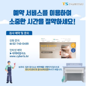 자동차를 타고 다니시는 분들은 정기적으로 꼭 해야 하는 검사가 있습니다. 바로 자동차검사인데 자동차 검사는 유독 주말에 하시는 분들이 많습니다. 공단은 국민이 자동차검사를 보다 편리하게 이용할 수 있도록 모바일 기반 스마트 검사예약 서비스를 시행하고 있습니다.