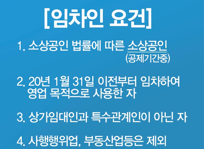 지금은 소상공인 정책자금 지원 대상에 부동산업은 제외돼 있습니다. 하지만 이 기간에는 임대료를 일정 수준 인하한 비주거용 임대업자도 자금지원 대상에 포함됩니다.